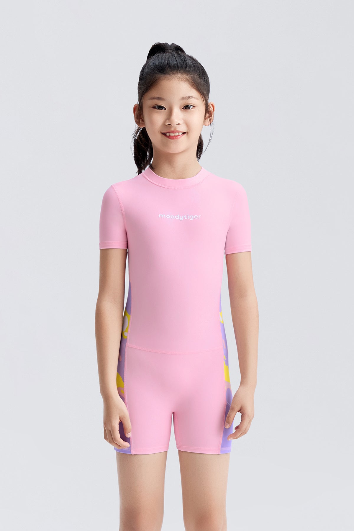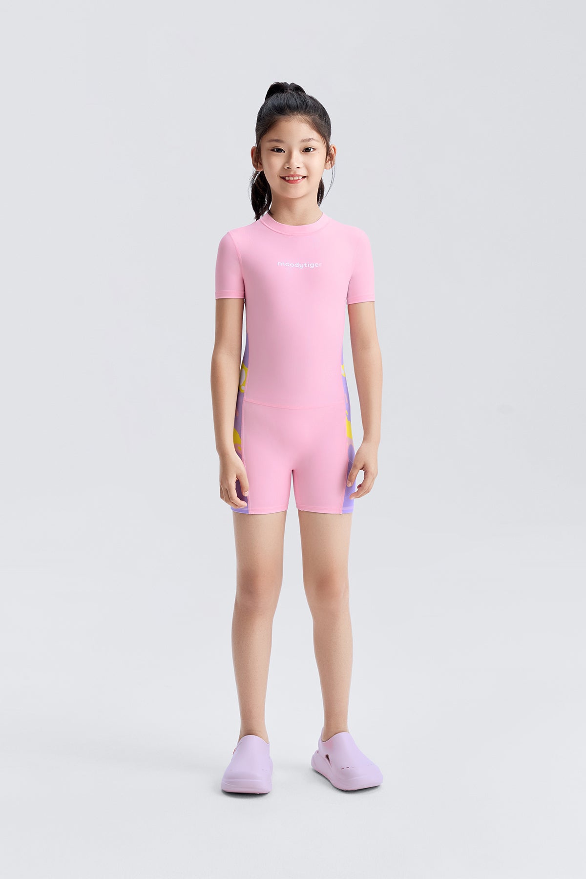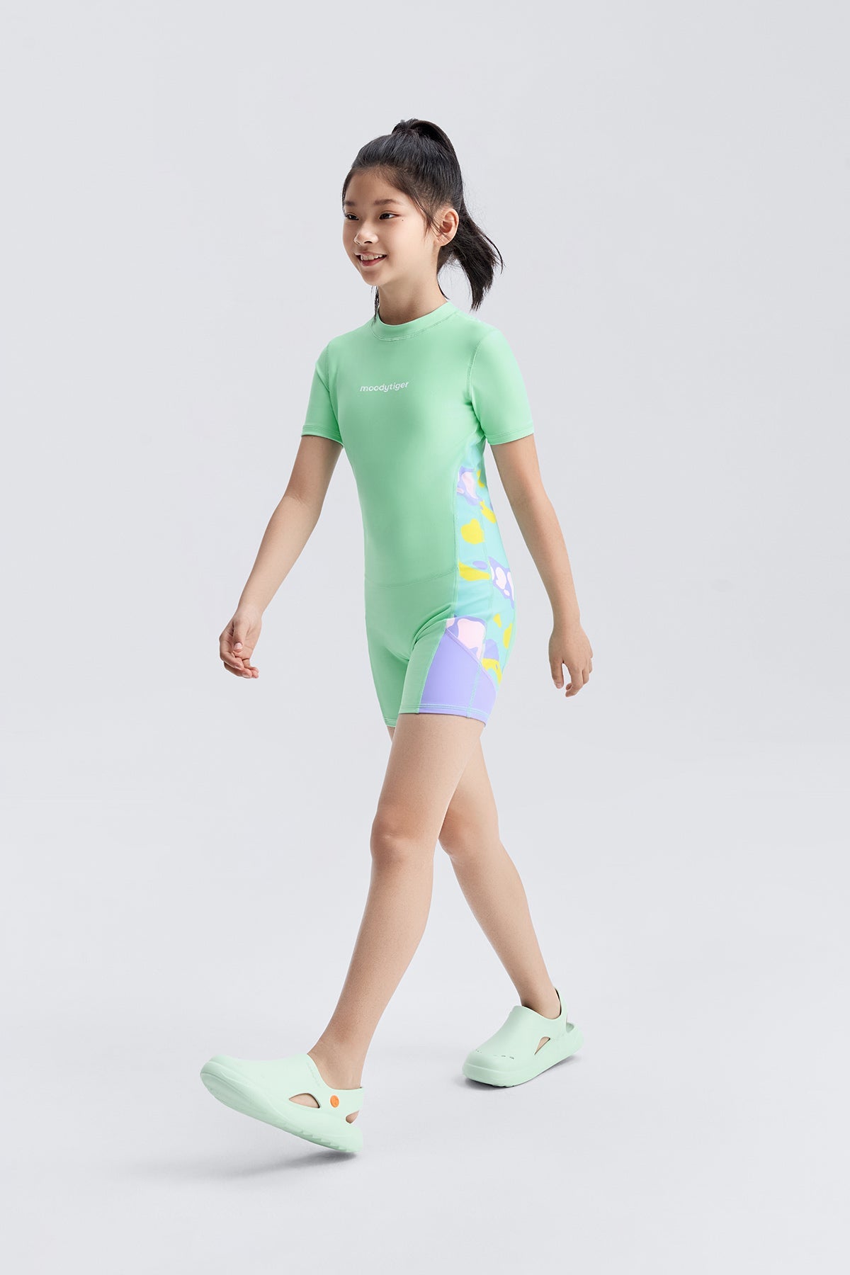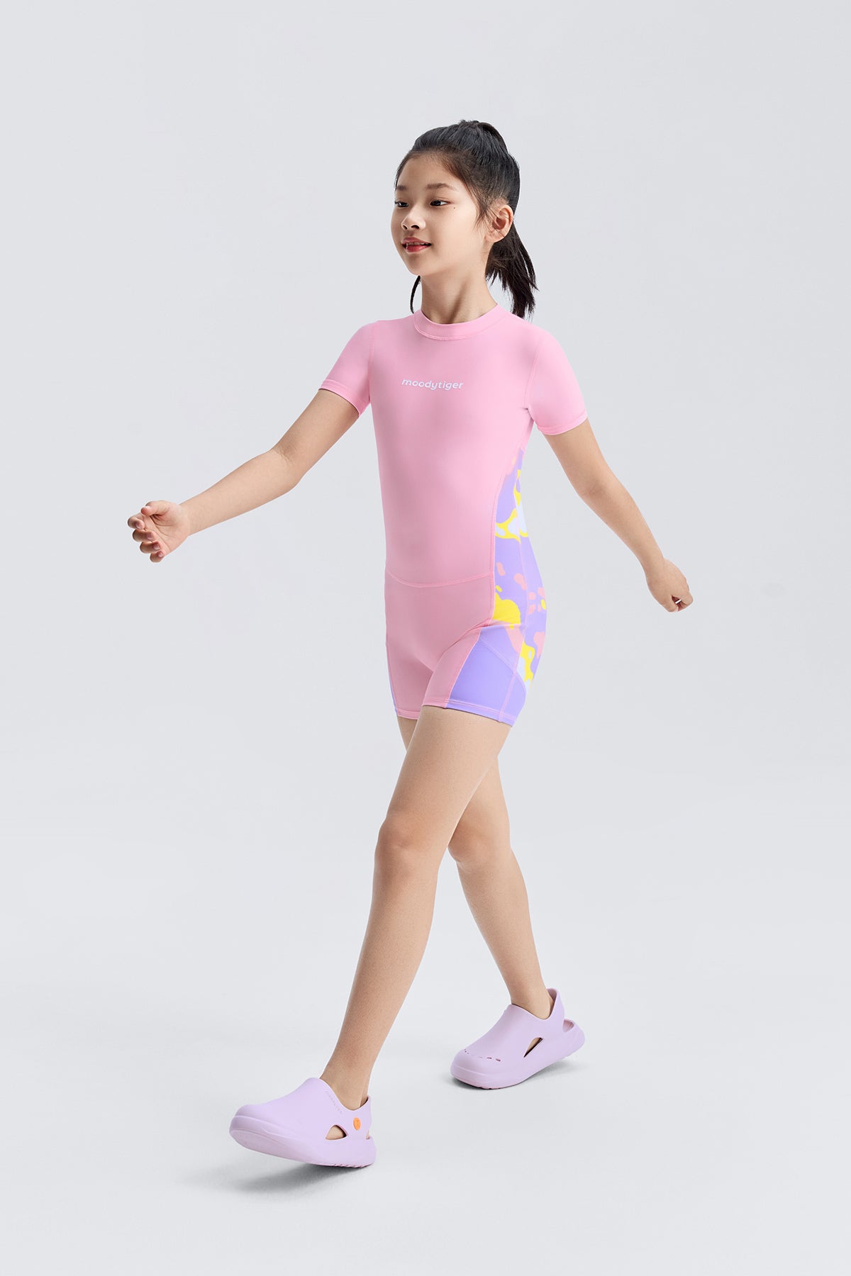 Professional swimsuit designed for girls, featuring chlorine-resistant technology and full stretch fabric with ColorFrog prints.