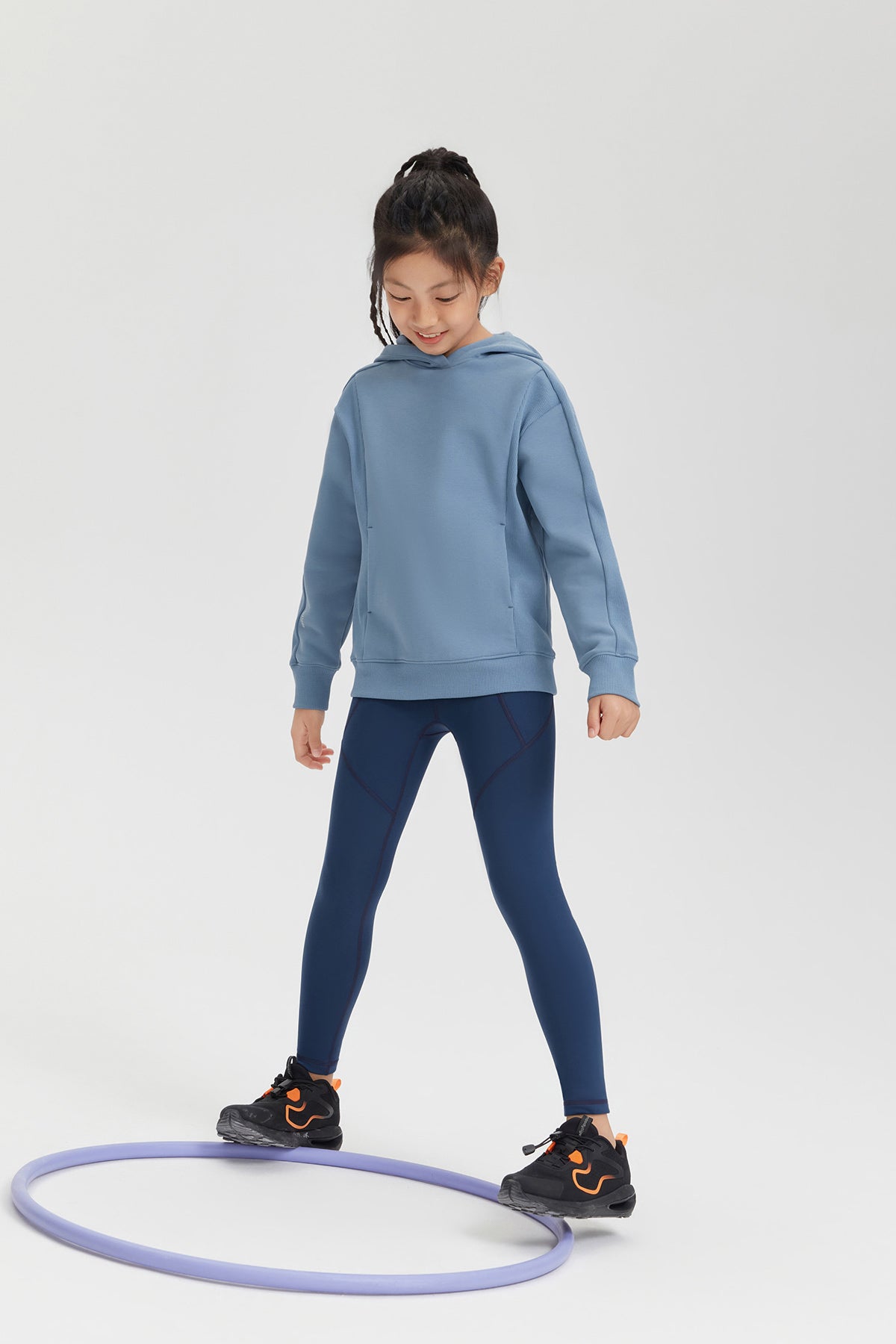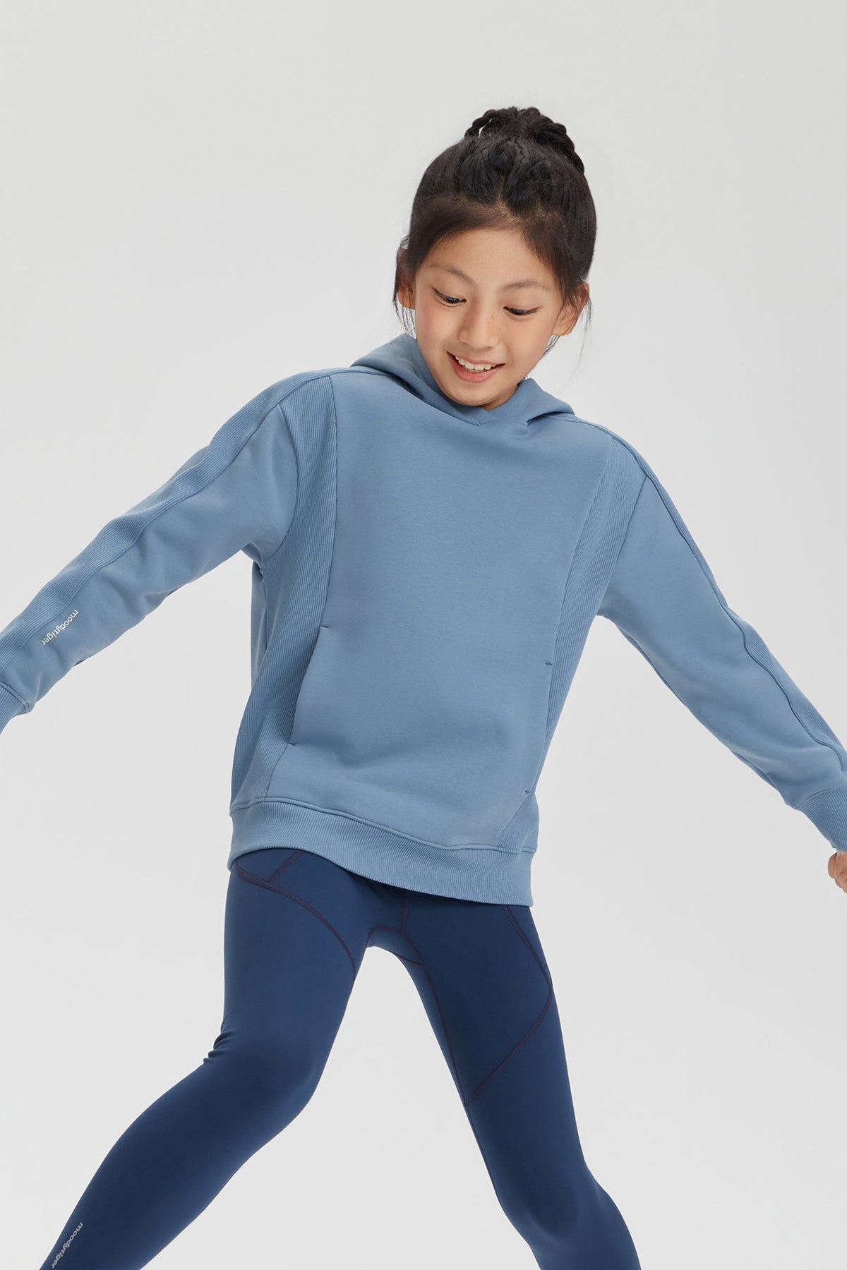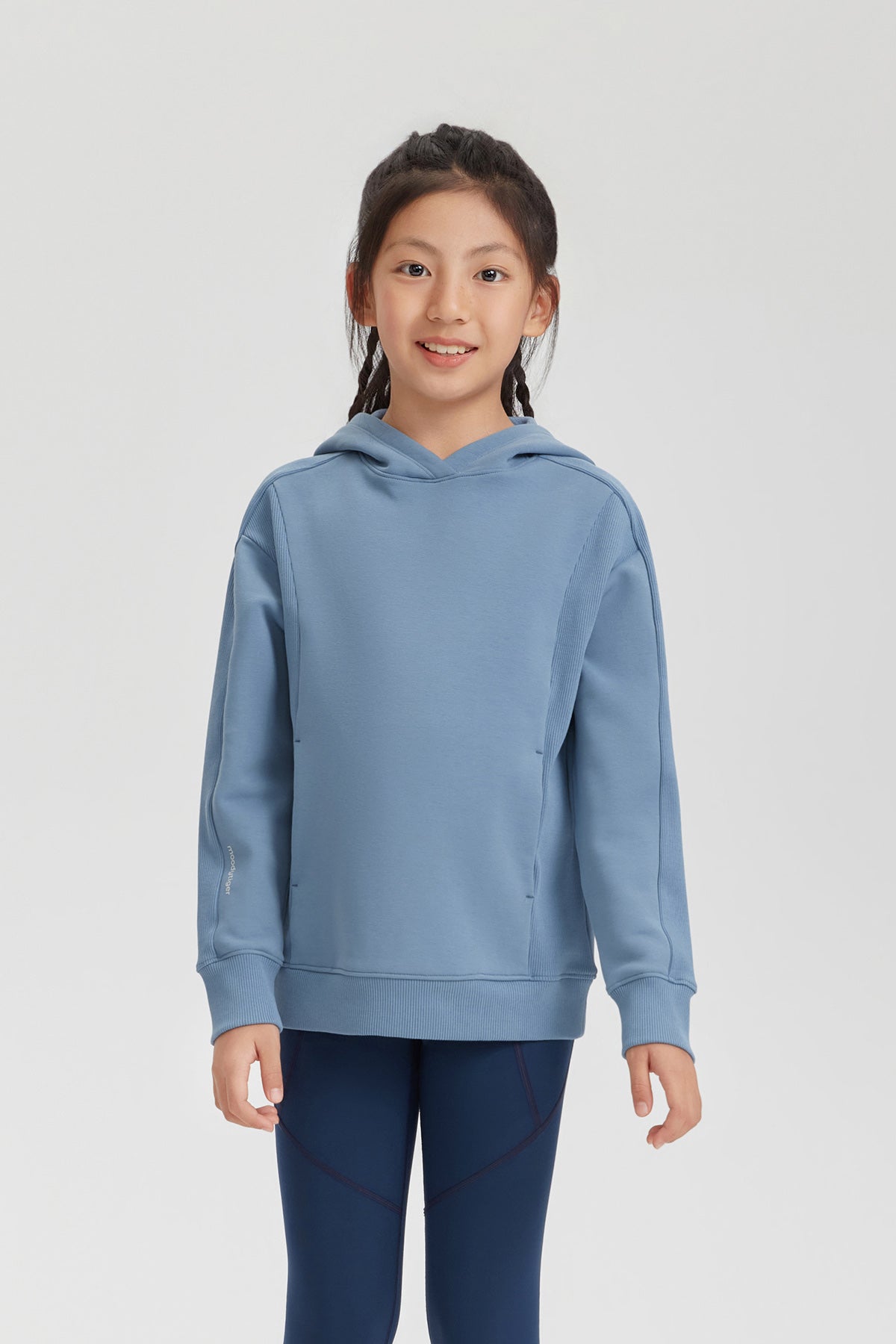 Featuring ribbed fabric on the sides for enhanced stretch and freedom of movement, it allows for playful activities without restriction. The integrated shoulder design minimizes friction, while the ribbed hem and cuffs provide a snug, windproof fit. With spacious kangaroo pockets for storage and hand warmth, this hoodie combines comfort and practicality for any winter adventure.